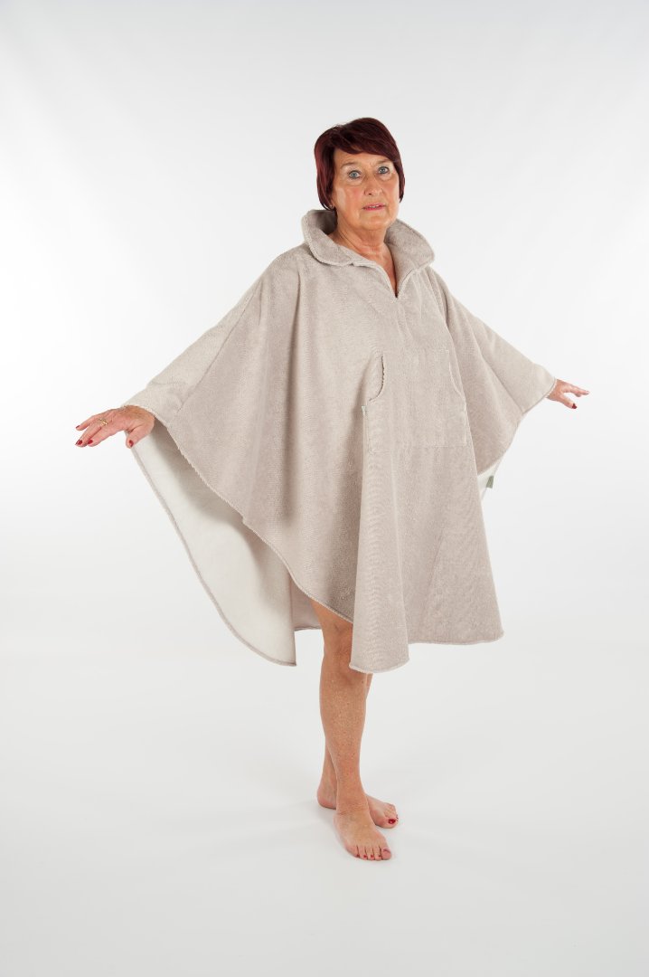 Badecape mit 2 Taschen vorne, V-Ausschnitt mit Kragen.