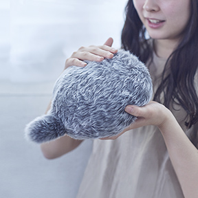 Petit Qoobo Petit Qoobo is a small cushion with a tail. Its tail reacts not only to stroking, but also to your voice. What's more, it has a heartbeat. meer info