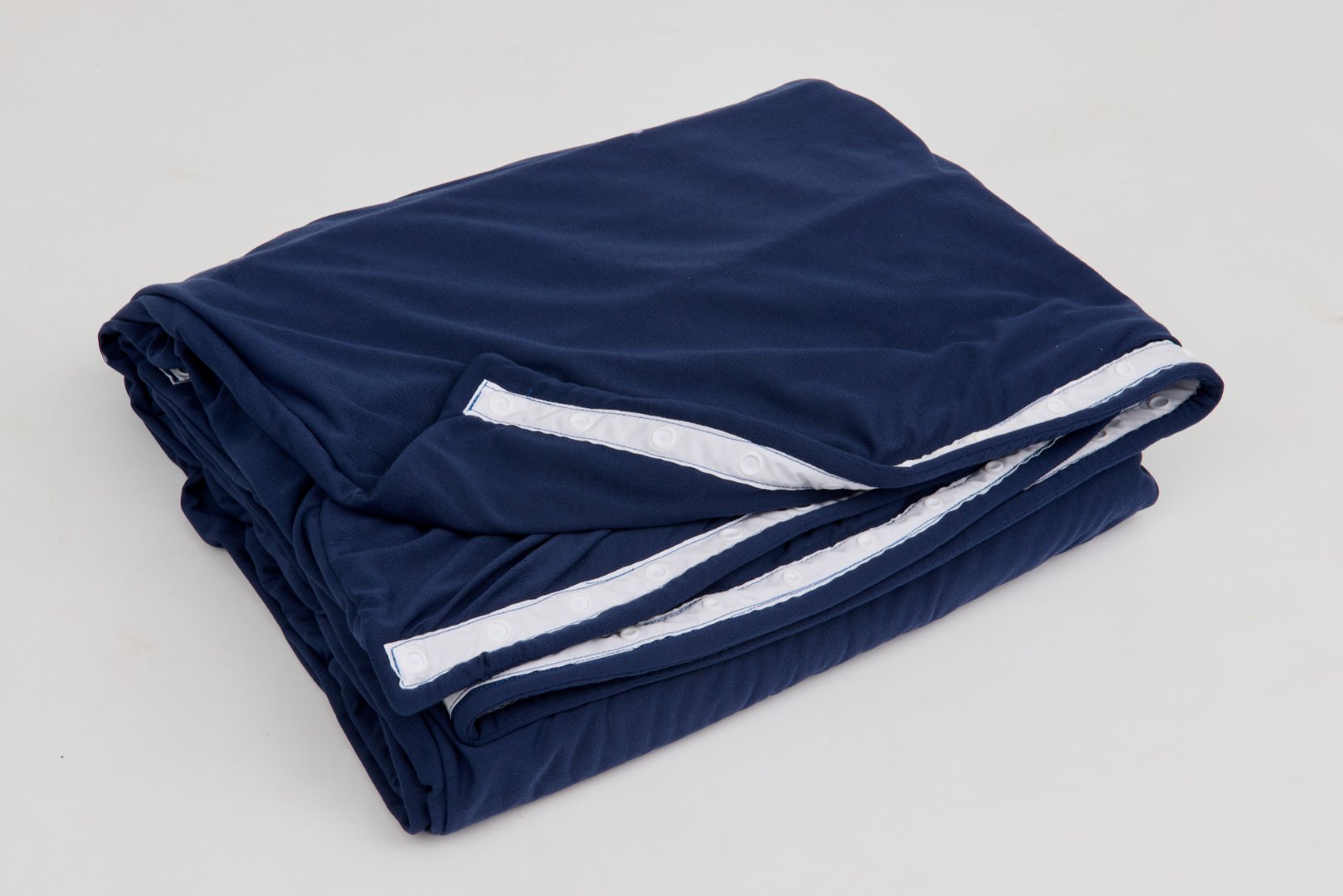 - Md 40332+/6TS: Verzwaringsdeken in kwal. 1010 marine, afm. 140/200 cm, gewicht 6 kg, drukknooplint aan beide zijden aan de zijkanten.